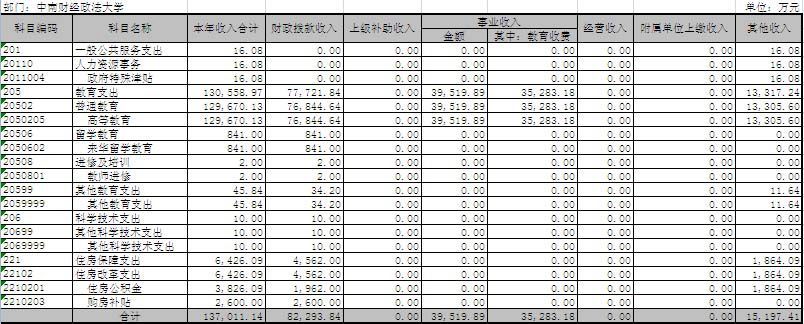 学校部门决算反映中南财经政法大学本级、中南财经政法大学后勤保障部经费收支情况。