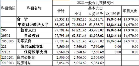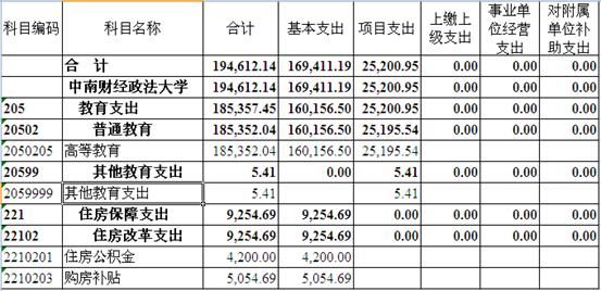 四、中南财经政法大学一般公共预算支出表说明