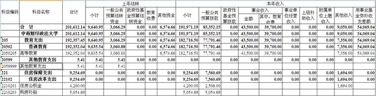 表1 中南财经政法大学收支总表