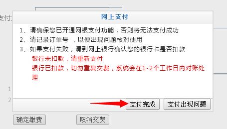 七、缴费成功,关闭银行页面,返回我校网上缴费系统后,请点击支付完成。