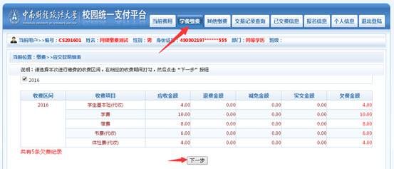 查询到学号后即可进行网上缴费: