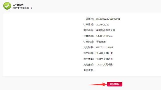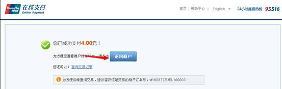 六:支付成功后,请点击:“返回商城”或“返回商户”,