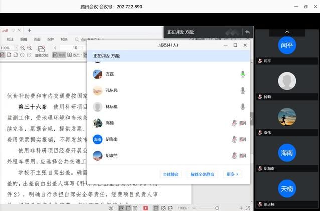 随后,来自各学院、各职能部门的参会代表踊跃发言。代表们对《办法》的修订,以及本次线上征求意见会的召开形式均给予了充分肯定,认为《办法》理念清晰、依据充足,同时实事求是、考虑周全。而线上意见征求会体现了财务部切实站在教职工角度出发,充分尊重各方意见的开放包容态度,是完善制度建设的良好举措。