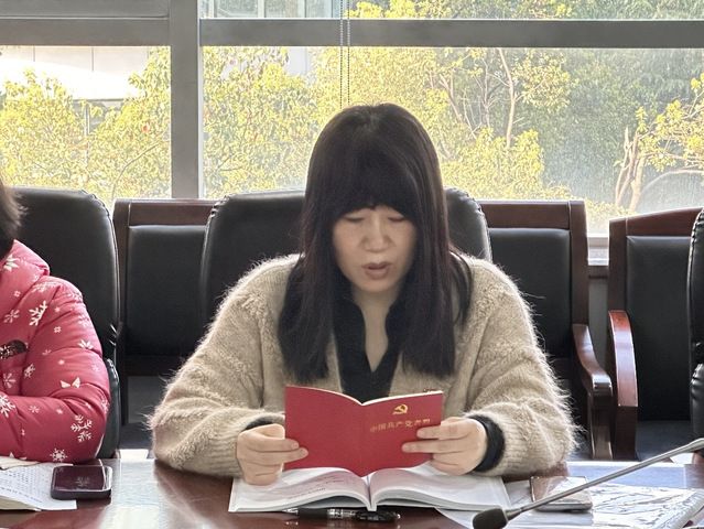 活动伊始,王章莉同志带领全体党员重温入党誓词,张宝莲同志诵读《中国共产党章程》“第九章 党组”“第十章 党和共产主义青年团的关系”及“第十一章 党徽党旗”,全体党员交纳党费。