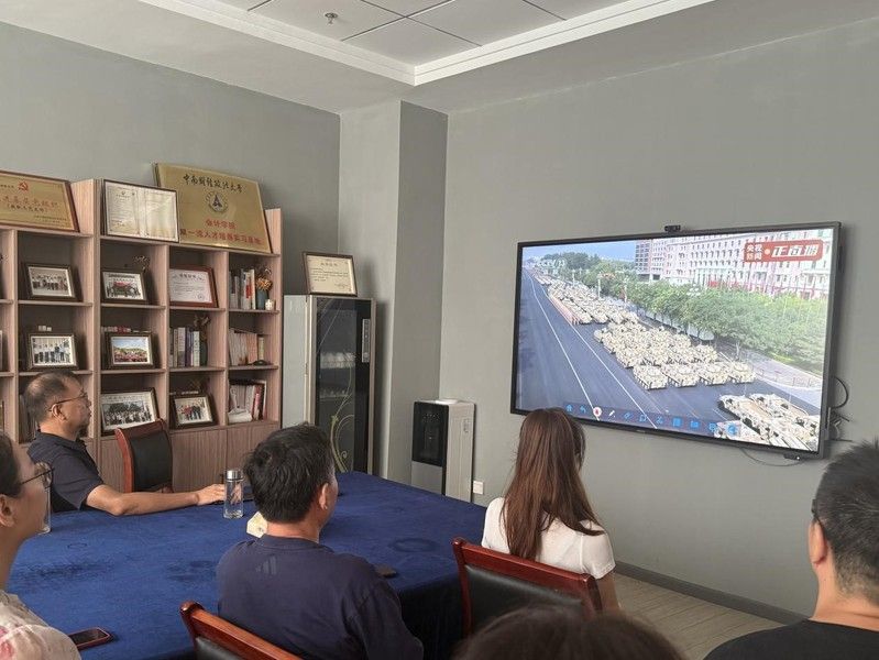 (通讯员 黄川 朱荻)9月3日上午,纪念中国人民抗日战争暨世界反法西斯战争胜利80周年大会在北京天安门广场隆重举行。财务部在中原楼219党员活动室设立集中观看分会场,支部党员及部门员工共同见证了阅兵盛举。